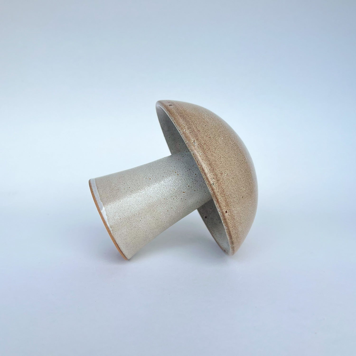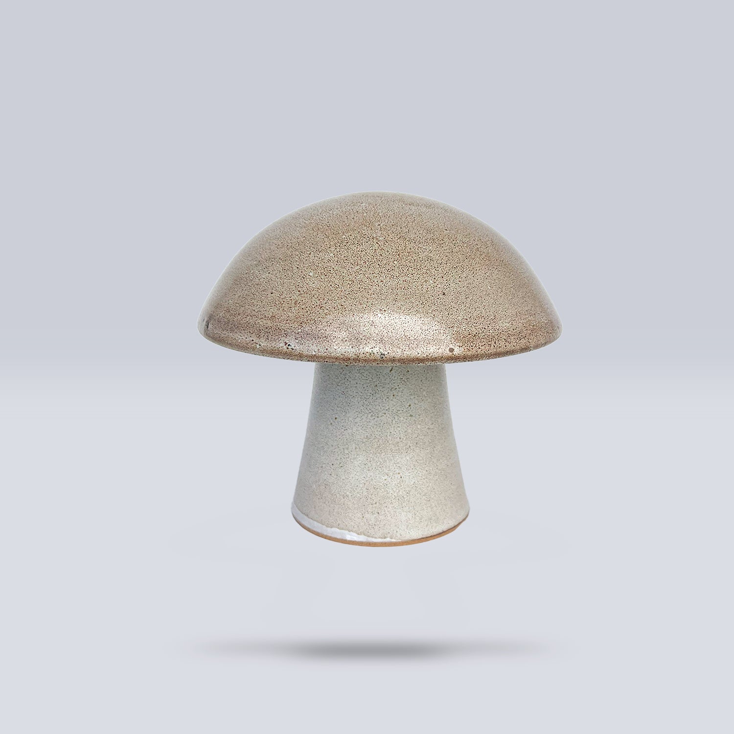 Estas esculturas de hongo no son solo decorativas, sino también una celebración de las formas naturales y orgánicas que habitan en la tierra. Cada pieza es torneada, esculpida y esmaltada a mano en nuestro taller, lo que asegura que no haya dos iguales.