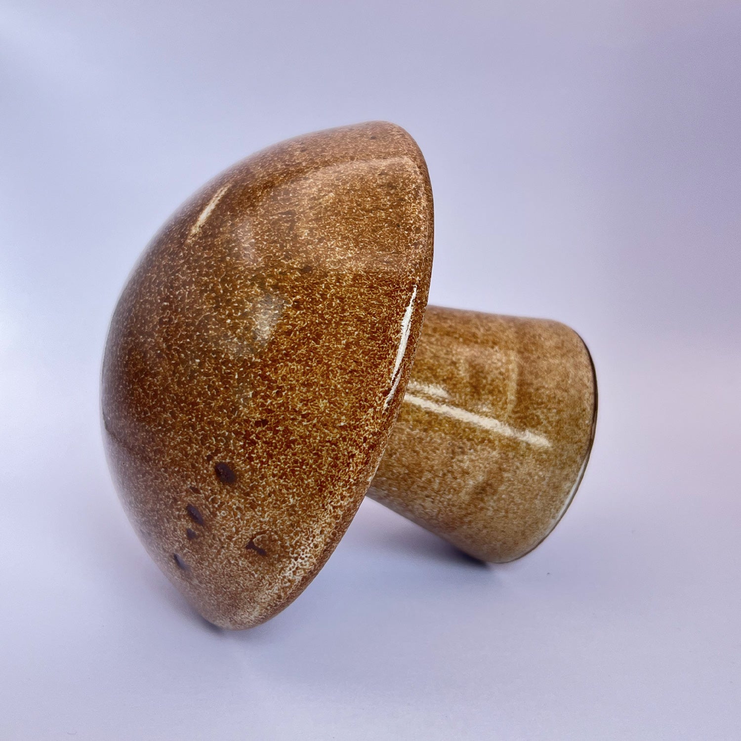 Estas esculturas de hongo no son solo decorativas, sino también una celebración de las formas naturales y orgánicas que habitan en la tierra. Cada pieza es torneada, esculpida y esmaltada a mano en nuestro taller, lo que asegura que no haya dos iguales.